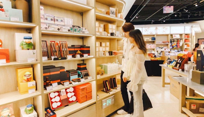 Geschenkeläden in der Nähe der Aussichtsplattform, die Souvenirs, Postkarten und Erinnerungsstücke an den Shanghai Tower verkaufen.