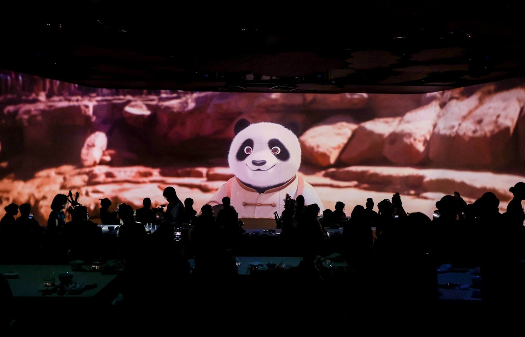 The walls transform into a continuous moving panorama inspired by China’s landscapes and cultural scenes.